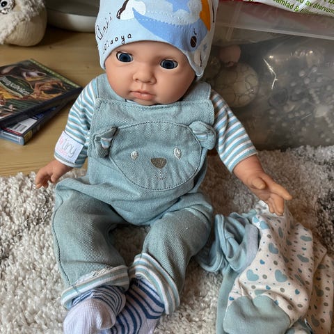 En söt docka med flera fina detaljer. Mjuk tygkropp och ”tyngd” i den.