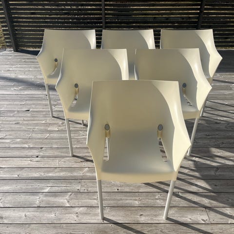 Victoria Ghost från varumärket Kartell, formgiven av Philippe Starck 2005. Stolen har klassiska linjer och en oval medaljongrygg som skapar tidlös elegans. Victoria Ghost är unikt tillverkad av materialet polykarbonat 2.0 i ett helt stycke.