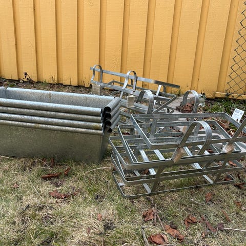 Tips: De svarta partierna längst ner på stolparna tyder på att de är förberedda för (eller har varit) monterade i mark/betong. Om de är helt nya och aldrig monterade är värdet högre för en köpare.