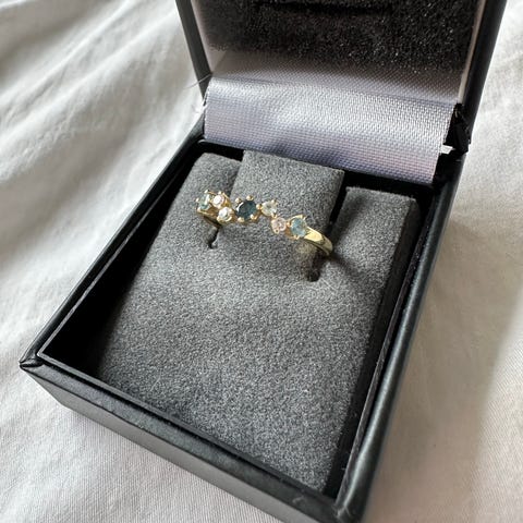 8 diamanter + 8 rosa safirer. VĂ€ldigt feminint och fint.