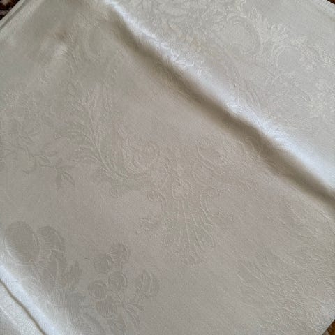 Bordsduk från Åhléns i 100% bomull. Duken har ett invävt blommönster.Mått 125*130 cm.