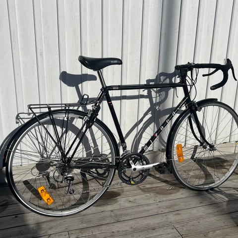 Säljer nu min fina Jaco långfärdscykel som tjänat mig under flera cykelsemstrar. Svart till färgen, med bockstyre, pakethållare bak och väskhängare fram. Lås med nyckel till ramlås bak.