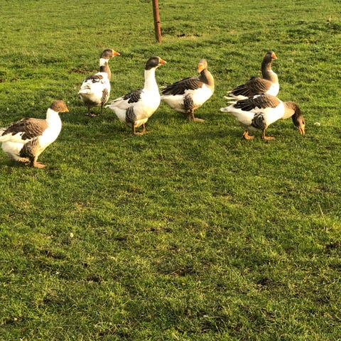 En gård är ingen gård utan ett gäng vaktande gäss ! Otroligt trevliga och intelligenta djur som kan bli väldigt tama om man behandlar dem som ett husdjur. Vill man föda upp dem för Slakt så är det det godaste fågelkött på jorden.