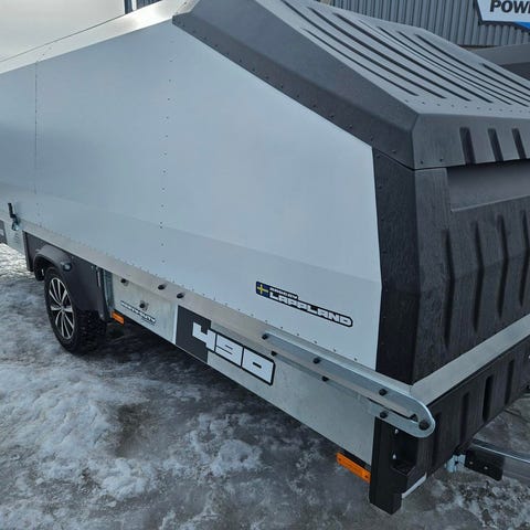 Denna North Grade 4P Grande Touring 445 TXI är utrustad med hel bakgavel, ledbelysning invändigt och utvändigt och dubbdäck på alufälg.