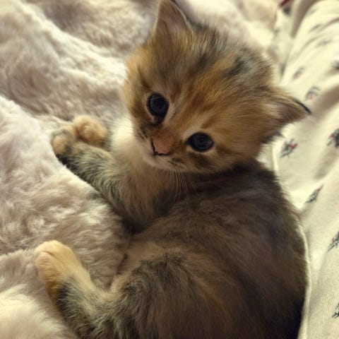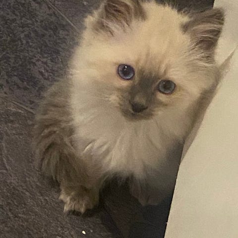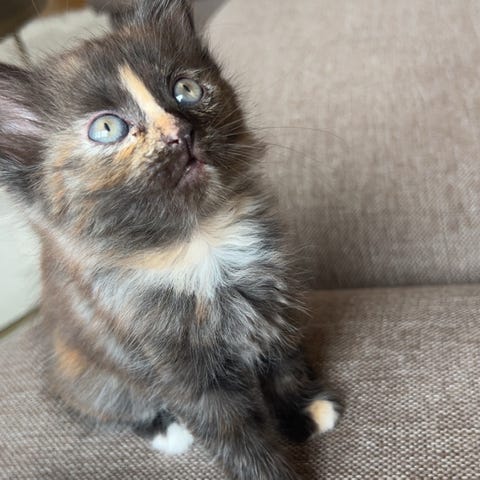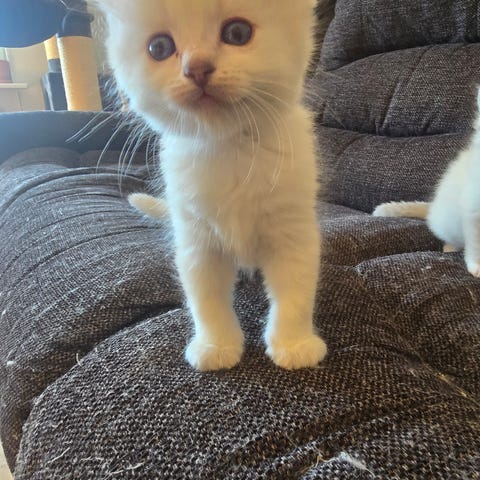 Sen är det 1 creme hona och 1 blå sköldpaddsfärgad hona och 1 svart hane där benen är lite grå.