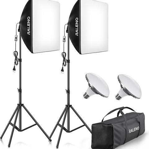 Studioblixtar kit med två Godox SK400ii, softboxar, ljusformare och stativ.
