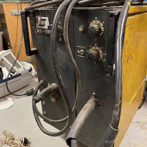 Oerlikon Citocut 20IC WT plasmaskärare med tillhörande munstyckssats. Den har frontpanel med digital display och reglage för inställning av strömstyrka. Till enheten hör kablar och klämmor för anslutning. Medföljande sats i blå plastlåda innehåller olika munstycken och reservdelar för plasmaskärning, med översiktschema i locket. Medföljer även en vagn och luftslang.