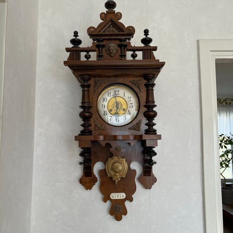Väggpendyl i mörkt trä med slagverk