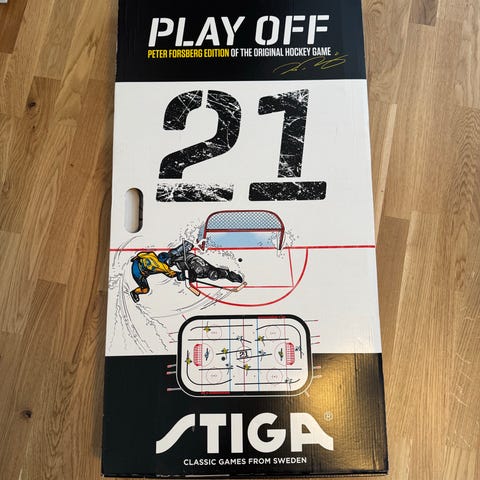 Stiga Peter Forsberg Edition hockeyspel. Bordshockeyspel med motiv och design inspirerad av Peter Forsberg. Levereras i originalförpackning enligt bilden. Avsett för spel på bord eller plan yta och kan användas av både barn och vuxna.