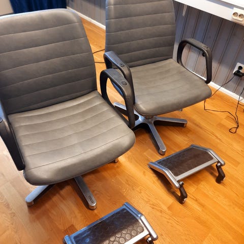 Totalt 6 stycken stolar.4 fungerar felfritt.2 fungerar inte i dagsläget men kan lagas av den händige.