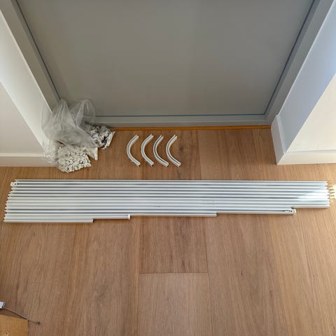 Flerspårig skena för gardiner. 4 st 140cm och en kort på 43 cm.