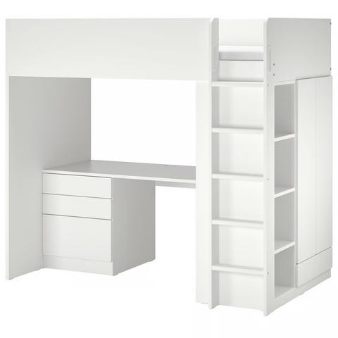 IKEA loftsäng med skrivbord och förvaring vit/rosa