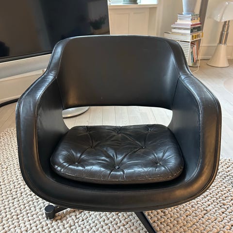 3st Fåtölj svart läder med snurrstativ
