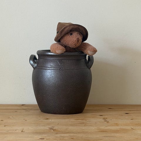 Fyra små höganäskrukor, 3 st 1/4 L 1 st 1/2 L