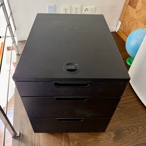 Stadig och praktisk lådhurts. 3 låsbara lådor. Som ny. 5 hjul. Alla tillbehör finns, inkl. nycklar.
