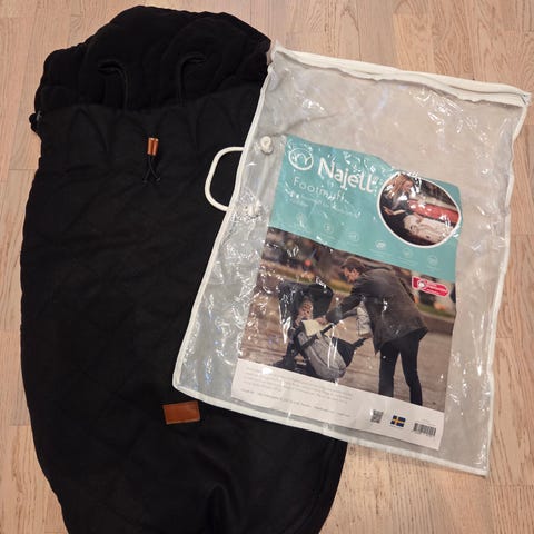Säljer en nästan oanvänd åkpåse från Najell. Matchande barnvagnshandskar finns att köpa till för 350kr om så önskas.