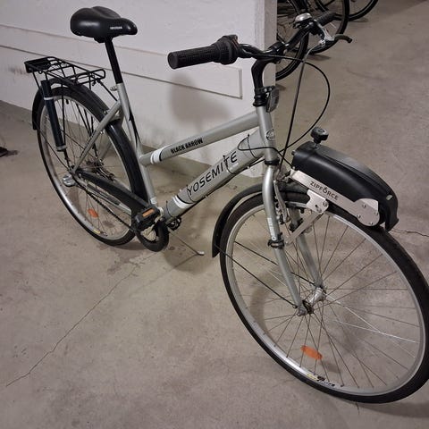 Mountainbike för unisex med ramstorlek L och 28-tums hjul. Samt stänkskärmar. Passar för vardagscykling och enklare terrängkörning. Ramkonstruktionen är anpassad för vuxna och ger en upprätt och stabil sittställning. Färg enligt bild.