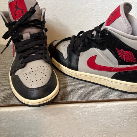Skorna är i vitt med röda detaljer och mellanhög modell. Ovandel med snörning och perforeringar för ventilation. Gummisula med mönster för grepp på underlaget. Passar för basket och vardagsbruk.