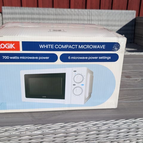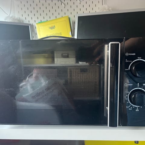 En vanlig mikrovågsugn från Ikea. Jag använde den i ungefär en månad, men den passade inte in i min inredning, så jag bestämde mig för att sälja den. Den är redan ren inuti