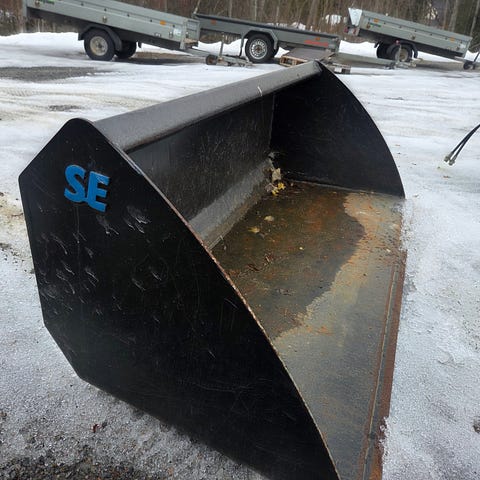 Skopan har ribbor i botten för att kunna sålla bort finare material som jord och sand. Utrustad med fäste upptill för montering på grävmaskin. Lämplig för hantering och sortering av sten, schaktmassor och annat material där separation önskas.