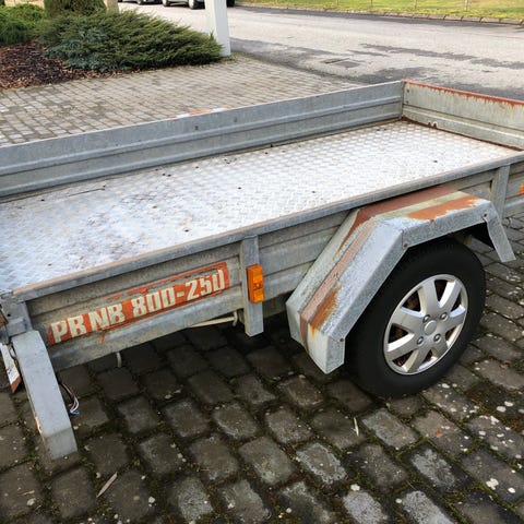 HT verken PB 700x220 släpvagn i galvaniserat utförande. Öppen lastkorg med fällbara lämmar. Utrustad med en axel, stänkskärmar, belysning bak samt kulkoppling framtill. Passar för transport av exempelvis byggmaterial, trädgårdsavfall och annat gods inom tillåten lastvikt och mått. Registreringsskylt och bakljus är monterade enligt bilderna.Nybesiktigad till2028-03-19. Nyrenoverad. Nya bakljus, nya stötdämpare, renoverad flakskiva, ny el 13 polig, renoverade bromsar, ny påskjuts broms. Flakmått 225x150 cm. Last vikt 500 kg.