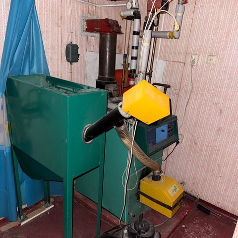 Pelletspanna med pelletsbrännare och förråd