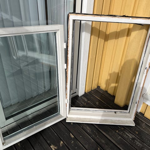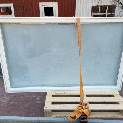 Fönster med träram i rektangulär form. Glasrutorna sitter i träramar som är målade i vitt på ena sidan. Passar exempelvis för enklare byggnader, friggebod, förråd eller liknande där man behöver större fönsterytor. Öppnas utåt och uppåt