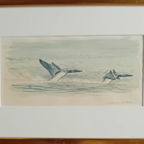 Tavla med flygande fåglar i havsmotiv av Elis Barkstedt