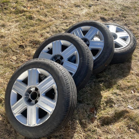 Däcken har suttit på min Audi A4 quatro -09. De har ett par millimeter kvar att köra på. Går lätt över sommaren! Fälgarna har sina små skavanker här och där men annars helt ok