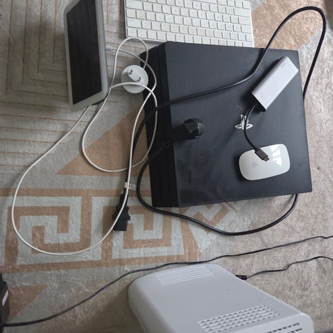 Komplett med strömsladd och kablar.