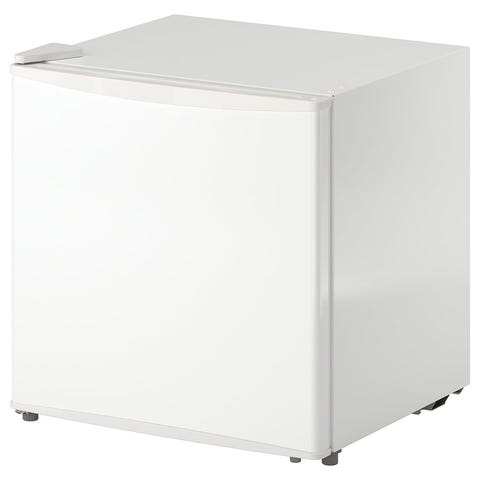 Mindre IKEA kylskåp i vitt. Fristående modell med en dörr och kompakt storlek. Överst finns ett litet frysfack för enklare infrysning eller förvaring av frysta varor. Passar exempelvis i mindre kök, studentbostad eller som extra kyl. För fler bilder, skicka pm! ☺️