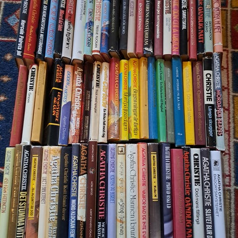 Maria Lang bokpaket med deckare i blandade titlar. Paketet innehåller flera inbundna böcker och några med skyddsomslag. Böckerna är på svenska och lämpar sig för läsare som är intresserade av klassiska svenska kriminalromaner. Flera olika utgåvor och omslag förekommer i samlingen.