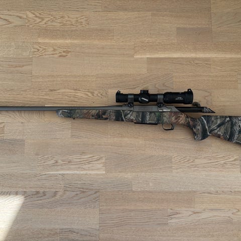 Jakt gevär i fint skick säljes gummi och komposit kolv gummi bakkappan rostfri coating på pipan och lådan och rostfri slutstycke magasin 3 st pipan är gängad i m 14-1.