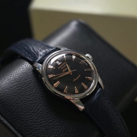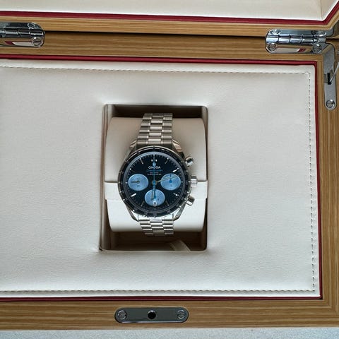 Klockan sitter idag på ett exklusivt brunt Hirsch-läderband som lyfter helhetsintrycket rejält. Originalstållänken följer självklart med och är helt oanvänd.