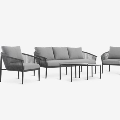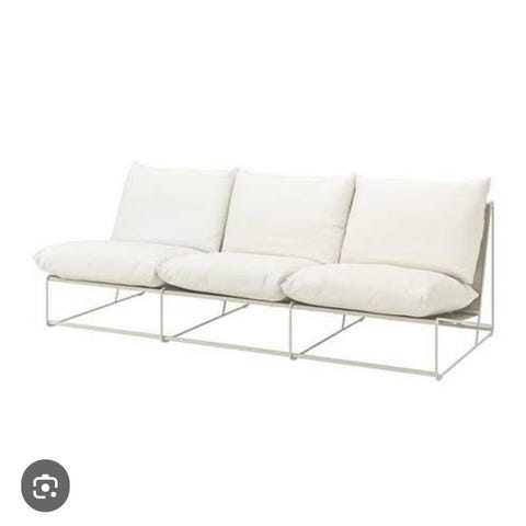 Utesoffa från Brafab i vit aluminium med mörkgrå kuddar. Soffan heter Belfort och har stått i vårt uterum, så den ser så gott som ny ut.