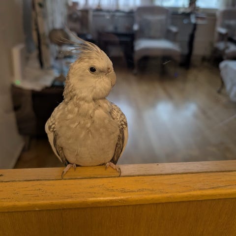 Lite tam men kan tränas mer. Vänlig, aktiv och tycker om att vara utanför buren.