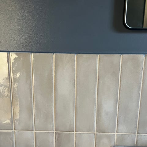 Bagno Espressioni Pasta Bianca kakelplattor i storlek 20x50 cm. Rektangulära väggplattor med mörk yta och ljus kärna. Tjocklek 10 mm enligt märkning på kartongen. Lämpliga för väggmontering i exempelvis badrum, kök eller andra inomhusmiljöer där keramiska plattor önskas.3,6 kvadrat