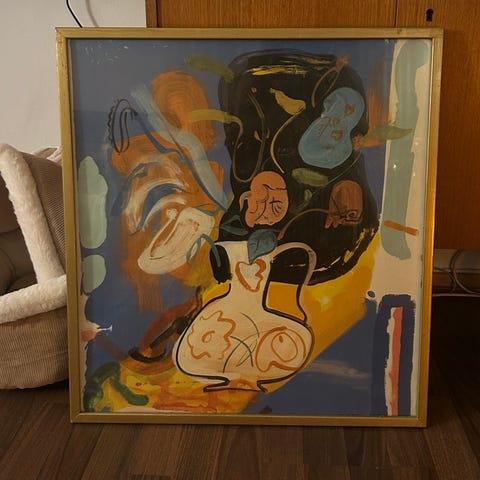 Tavla äldre konsttryck den ikoniska tuppen "Der Hahn" av Wolf Reuter. 46x65 cm