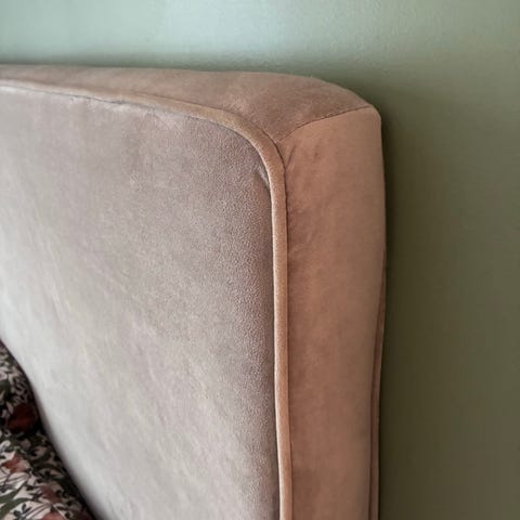 Mio sänggavel i sammet med sängkappa i samma stil. Allt i fint skick. Sänggavel är 180 cm bred och höjd 120 cm, sängkappan 180 cm och höjd 59 cm. Säljer allt tillsammans. Nypris 4500 kr. Säljer nu för 2000 kr.