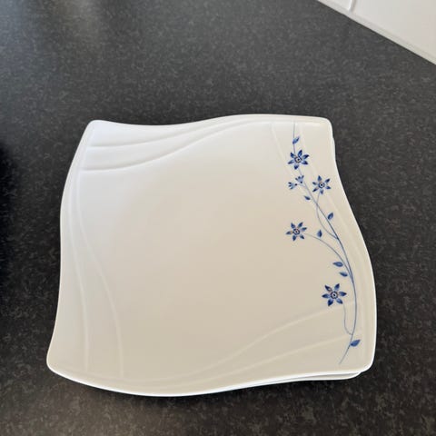 Fyrklövern, Anne Rooslien, 2 st mattallrikar 27 cm, och 2 st små skålar 8 cm.