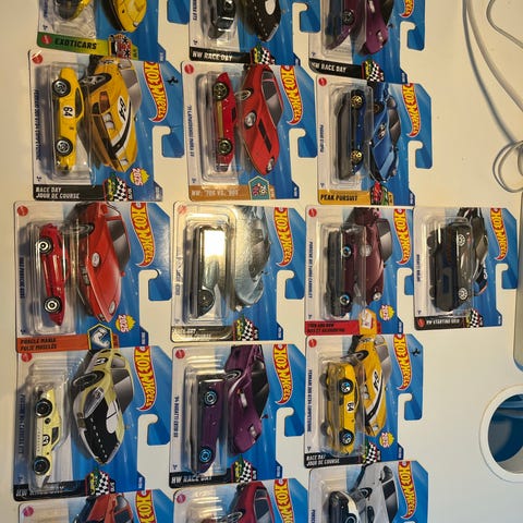 Fast Lane leksaksbilar samling med flera olika bilmodeller i mindre skala. Flera bilar ligger kvar i originalförpackning och några är lösa. Blandningen omfattar sportbilar, personbilar och andra biltyper i olika färger. Passar som leksaker eller som enkel samling av modellbilar i plast och metall. Antal bilar och exakta skalor framgår av bilderna.