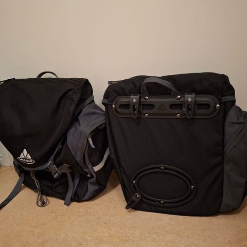 Fin cykelväska för pakethållare. Lätt att haka av och bära med sig. Regnskydd ingår.