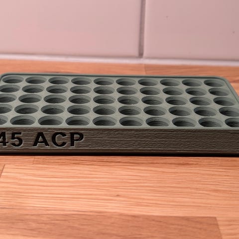 En laddbricka för kaliber .22 Hornet med plats för skott.