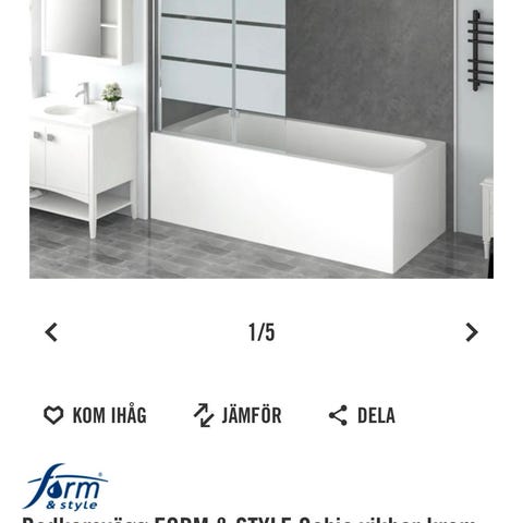 Delvis välvd duschvägg. 85 cm.