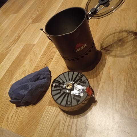 Stormkök i aluminium med flera delar. Setet innehåller vindskydd/ställning, kastruller i olika storlekar, stekpanna, lock samt brännare. Passar för matlagning utomhus, exempelvis vid camping, vandring eller andra friluftsaktiviteter. Alla delar kan packas ihop kompakt för enkel transport och förvaring. anpassad även för gas