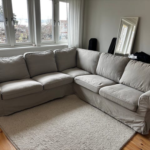 Säljer en bekväm och rymlig Ektorp hörnsoffa. Perfekt för vardagsrummet och väldigt skön att både sitta och ligga i.