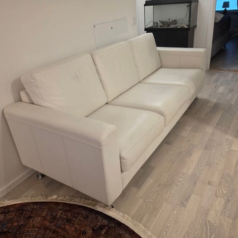 Hjort Knudsen 3,5 Sits Vit Skinnsoffa i dun