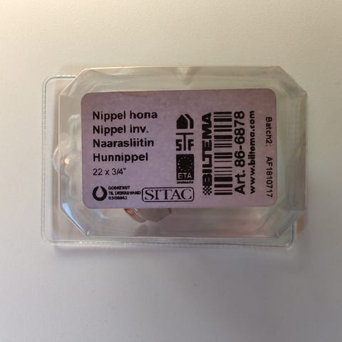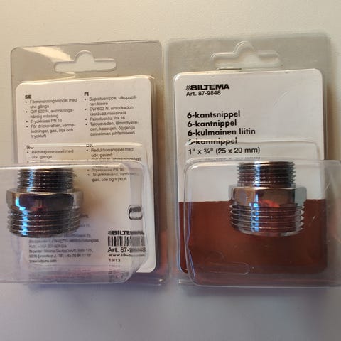 NYA 2 st Nippel hona mässing 22 x 1"