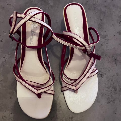 Röda höga klackar storlek är 40