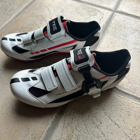 DMT landsvägscykelskor i storlek 40. Skorna är svart/vita med orangea detaljer och har vridspänne för justerbar passform. Sulan är styv med fästen för landsvägsklossar (3-bultsinfästning). Avsedda för cykling på landsväg och passar för användare som behöver cykelskor i storlek 40.